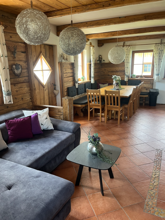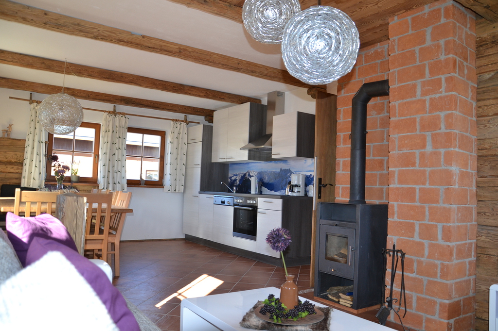 Weiters verfügt das Almchalet auf 150 m2 Wohnfläche über eine komplett ausgestattete Küche, einem Wohnzimmer, einer Essecke, 2 Badezimmer, 2 WC und einem Skischuhraum.