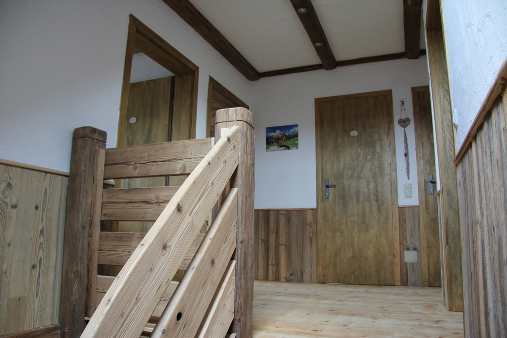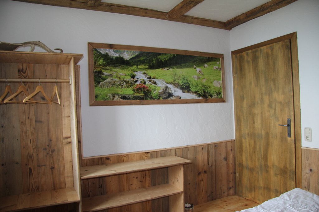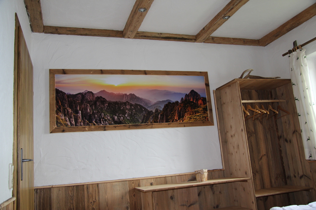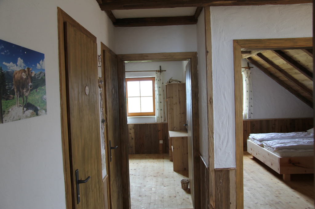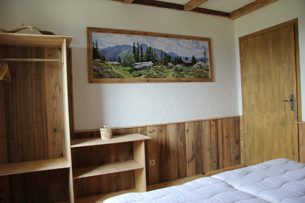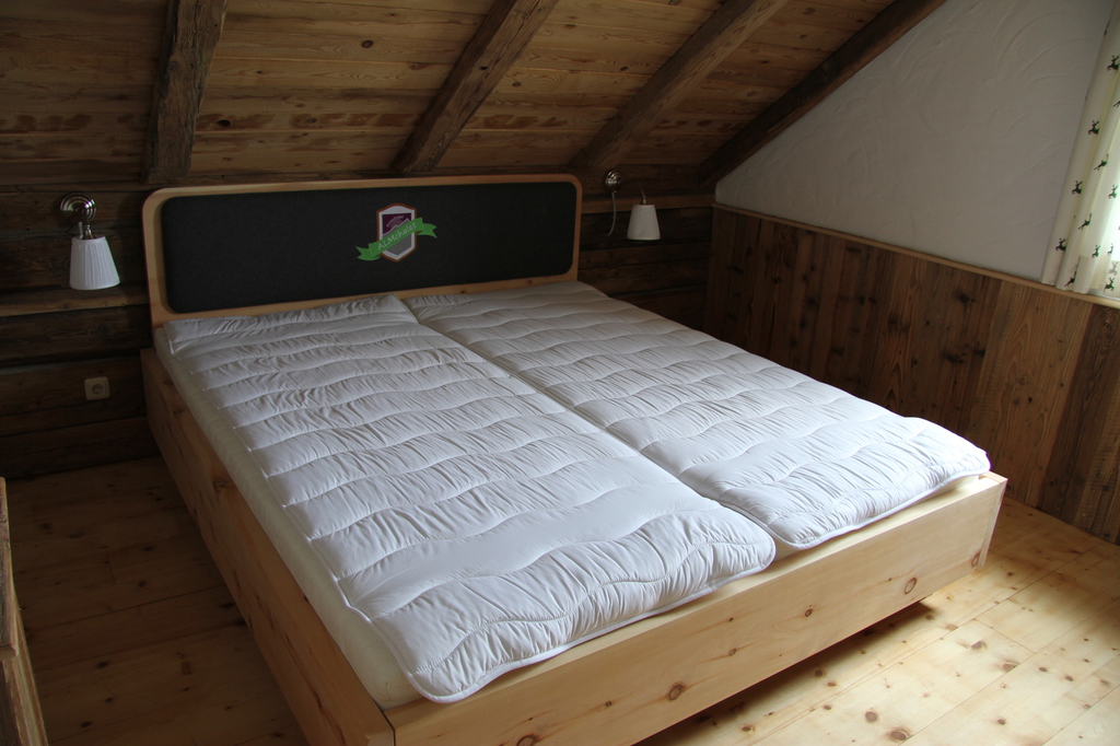 12 Peronen finden Platz in 4 Schlafzimmer mit komfortablen Vollholzdoppelbetten aus Zirbenholz und 1 Schlafzimmer mit 2 Stockbetten. Für Kleinkinder ist noch ein zusätzliches Gitterbett und wenn nötig ein Beistellbett verfügbar.